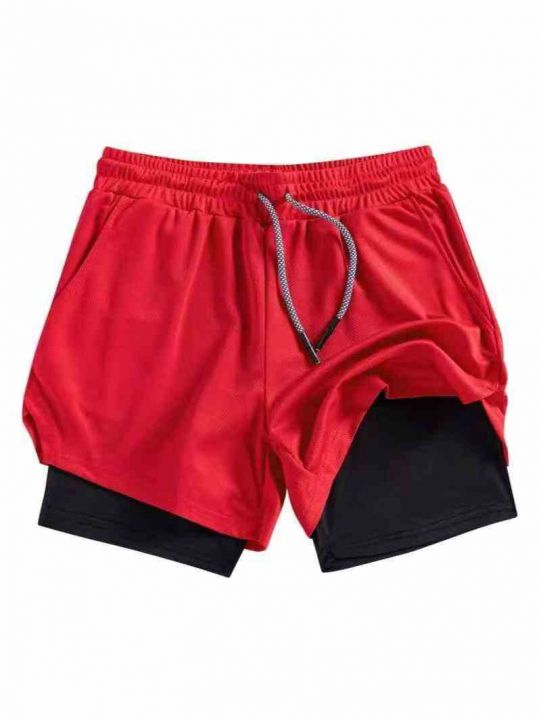 美式运动短裤男宽松排汗速干假两件防磨裆短裤篮球跑步训练健身,独立包装,...