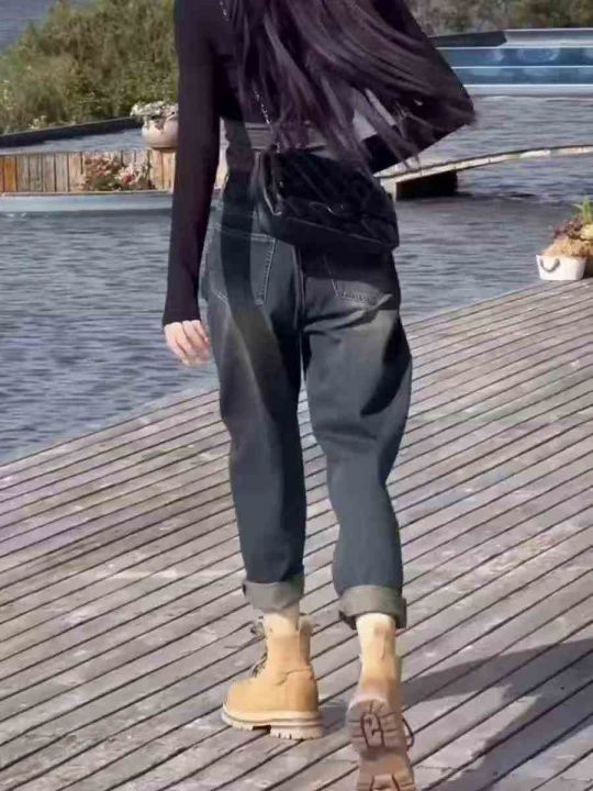 春秋新款高弹力网红复古高腰宽松百搭胖MM哈伦牛仔老爹裤,独立包装带吊牌,...