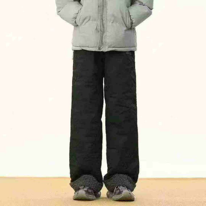 防寒休闲羊羔保暖裤男女冬季潮宽松葫芦纹防水直筒裤加绒滑雪棉裤,数量452...