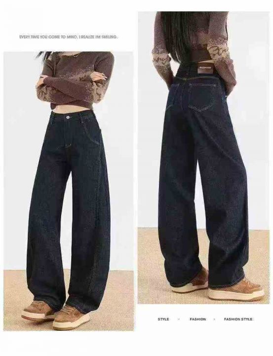 高品质高腰牛仔阔腿裤女直筒裤垂感百搭拖地裤,加绒款,单款单色,独立包装...