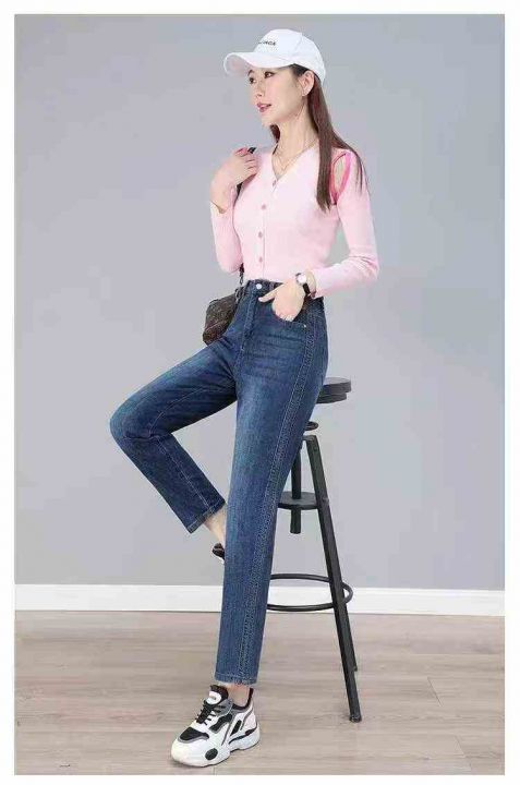 春秋新款高弹力洗水棉网红爆款胖MM哈伦牛仔老爹裤,独立包装带吊牌,码数L-...