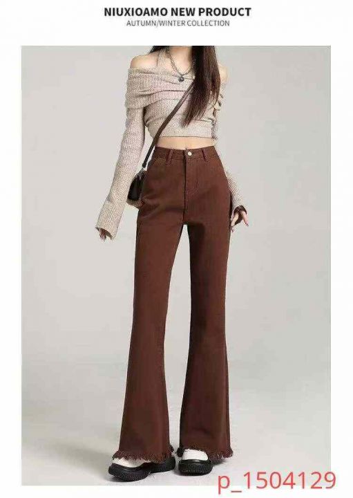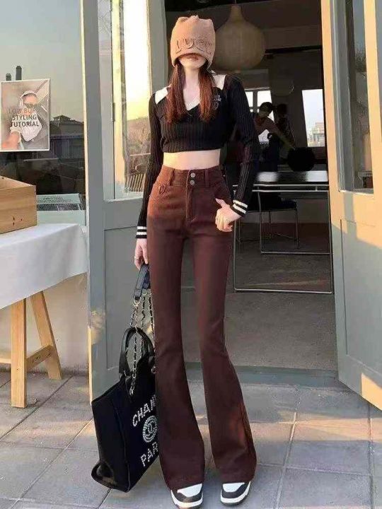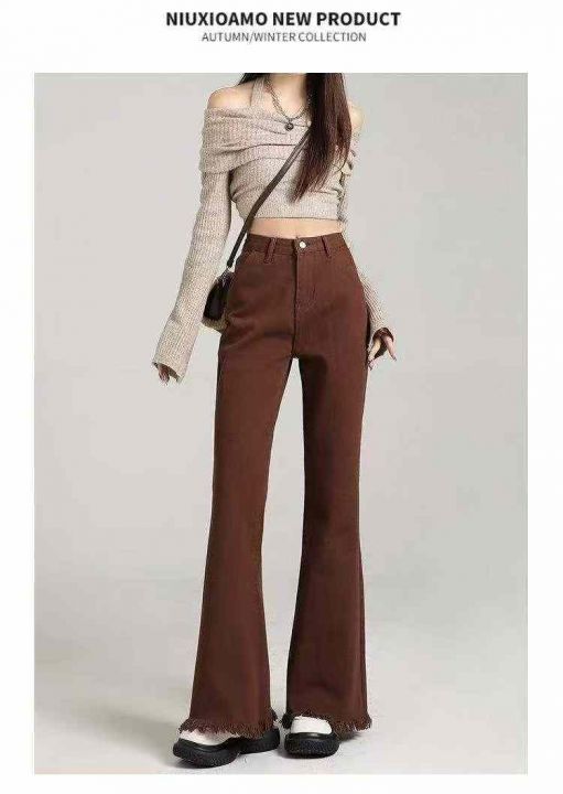 ☕️咖色高弹力喇叭牛仔裤女高腰显瘦弹力修身马蹄阔腿咖色加长喇叭裤子122...