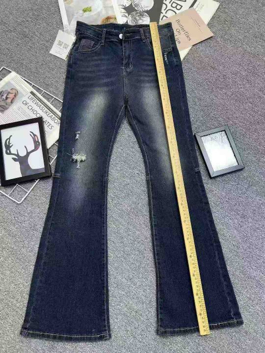 万佳好货☕️高弹力设计高腰微喇牛仔裤女新款美式高街复古蓝破洞马蹄裤452...