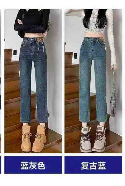 ☕️高弹力直筒牛仔裤女新款春秋宽松弹力显瘦高腰法棍裤九分烟管裤50条全清...