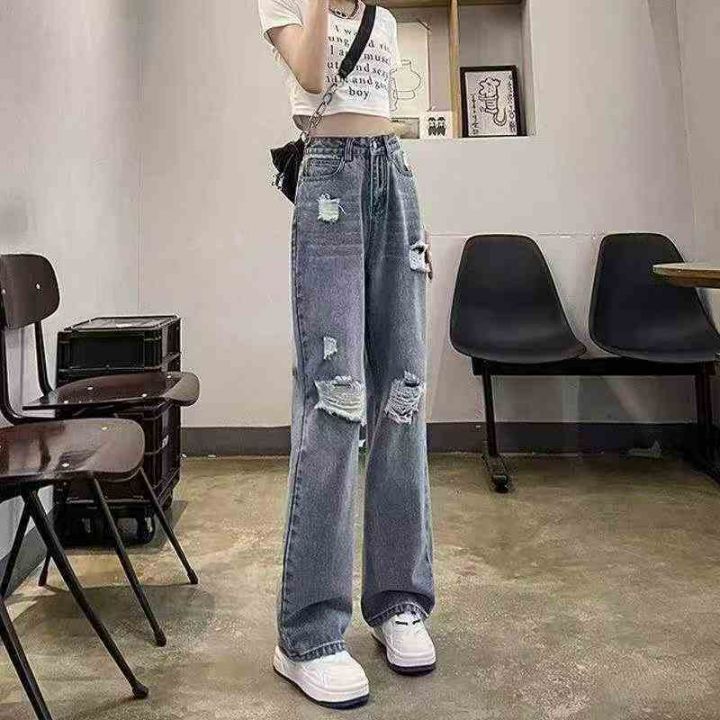 春夏季新款网红复古破洞牛仔直筒阔腿裤,独立包装带吊牌,码数27-31-32码(...