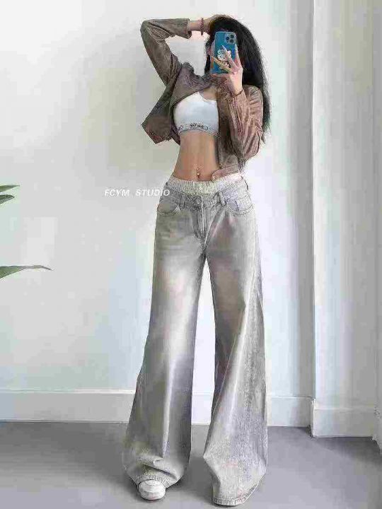 50条复古水洗做旧牛仔裤女秋冬季直筒阔腿辣妹休闲拖地长裤,码数S-M,独立...