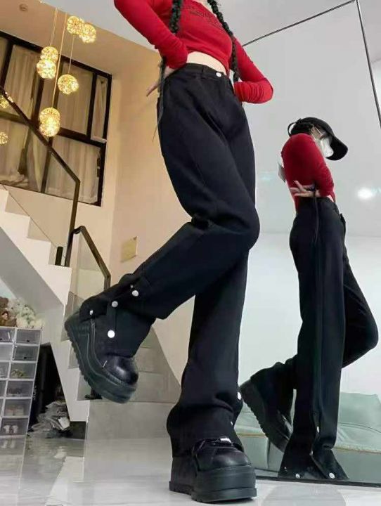 秋冬新款黑色宽松百搭排扣设计款洗水棉牛仔直筒烟管裤,独立包装带吊牌,码...