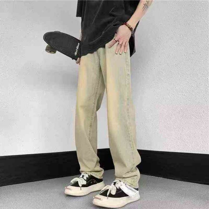 男士水洗黄泥色牛仔裤男款复古高街vibe宽松直筒阔腿裤260件,独立包装带吊...