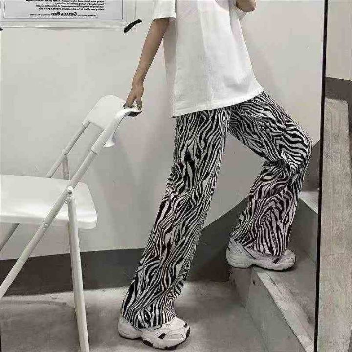 全清6.8分货+1秋冬季男女同款加绒斑马纹裤子直筒宽松百搭阔腿休闲裤拖地裤...
