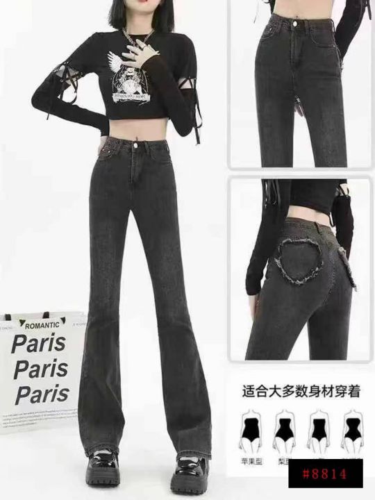 11.8清天猫仓回收1058件网红爆款复古设计感灰色显瘦弹力高腰微喇牛仔裤,码...