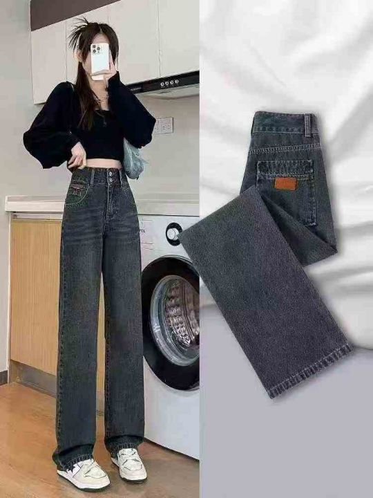 高品质高腰牛仔阔腿裤女直筒裤垂感百搭拖地裤,加绒款,单款单色,独立包装...