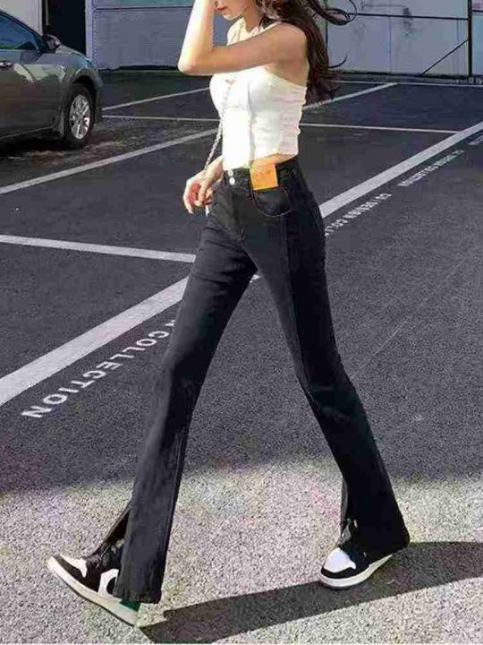 清9.8分货➕1高腰开叉牛仔裤女2025秋季新款韩范ins百搭修身显瘦百搭微喇长...