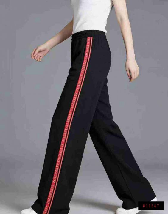 天猫精选300条 秋冬款高腰阔腿黑色字母条纹运动休闲加薄绒裤,吊牌价:259...