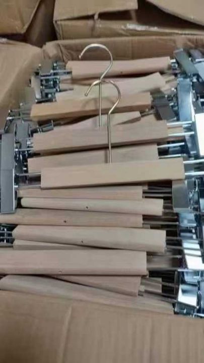 2厘米厚度的成人木衣架和裤夹,1.6元一个,可以选长金钩和长银钩和短钩。...