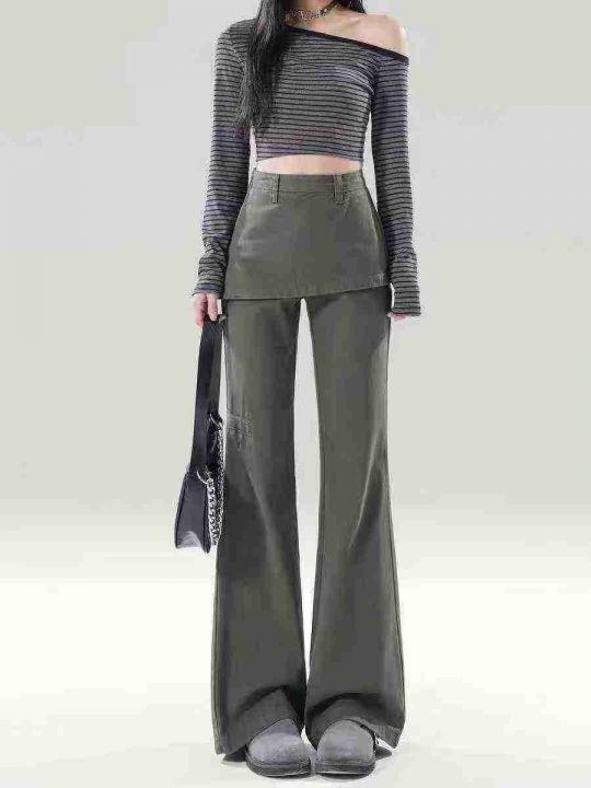 [發]胖妹妹女假两件微喇叭工装裤80件独立包装 码数3 4 洗水棉面料可穿16...