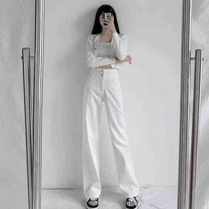 阔腿牛仔裤新款秋高腰宽松显瘦设计感交叉小众直筒长裤80件,单款两色,独立...