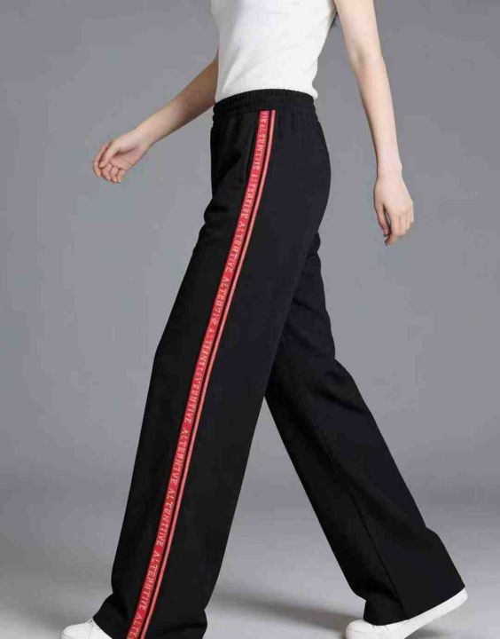 天猫精选300条 秋冬款高腰阔腿黑色字母条纹运动休闲加薄绒裤,吊牌价:259...