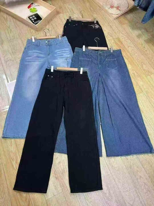 #Lady jeans wholesale外贸单大码宽腿直筒阔腿女士牛仔裤,数量976条,尺码...