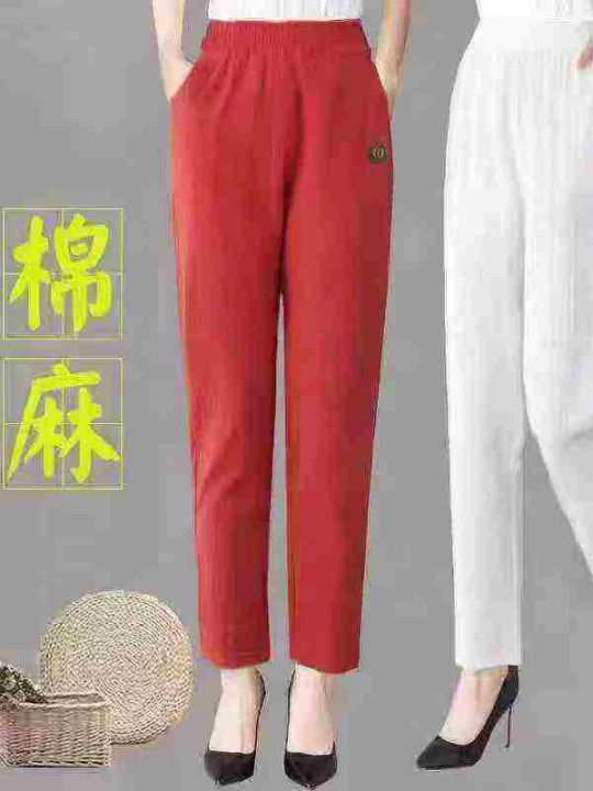 棉麻裤女夏季薄裤子女宽松中年妈妈显瘦女士休闲裤码数:1-4码(S-XL码)数...