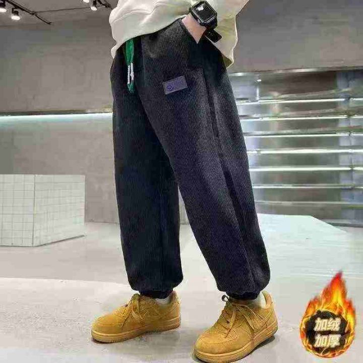 清7.8分货➕12025男童裤子秋冬款灯芯绒新款卫裤加绒加厚男孩中大童长裤潮,...