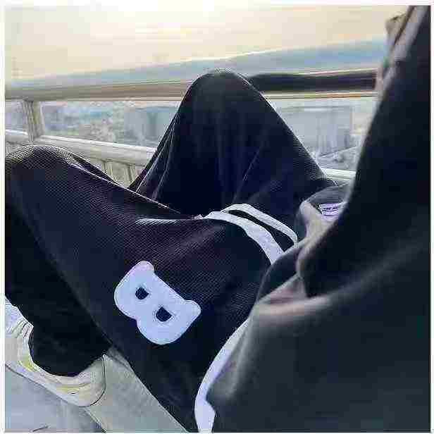 清6.9分货➕1华夫格字母休闲男裤直筒阔腿宽松街头港风休闲裤裤子男,数量27...