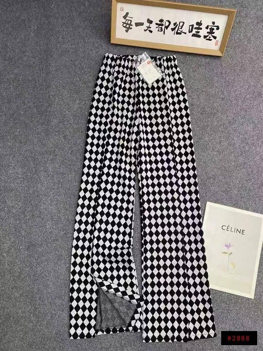 棋盘格子喇叭裤529件8.5,面料微弹,松紧腰,裤脚开叉,码数M-L,独立包装...