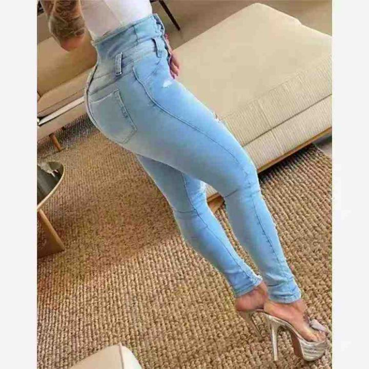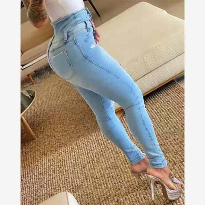 秋季新品外贸原单高弹力洗水棉破洞牛仔小脚裤,独立包装,码数S--XL码,480...