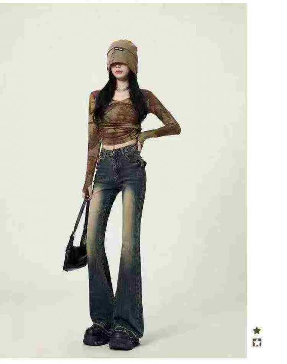 ins辣妹复古微喇叭牛仔裤女春秋爆款美式马蹄拖地裤,高弹力单款单色,独立...
