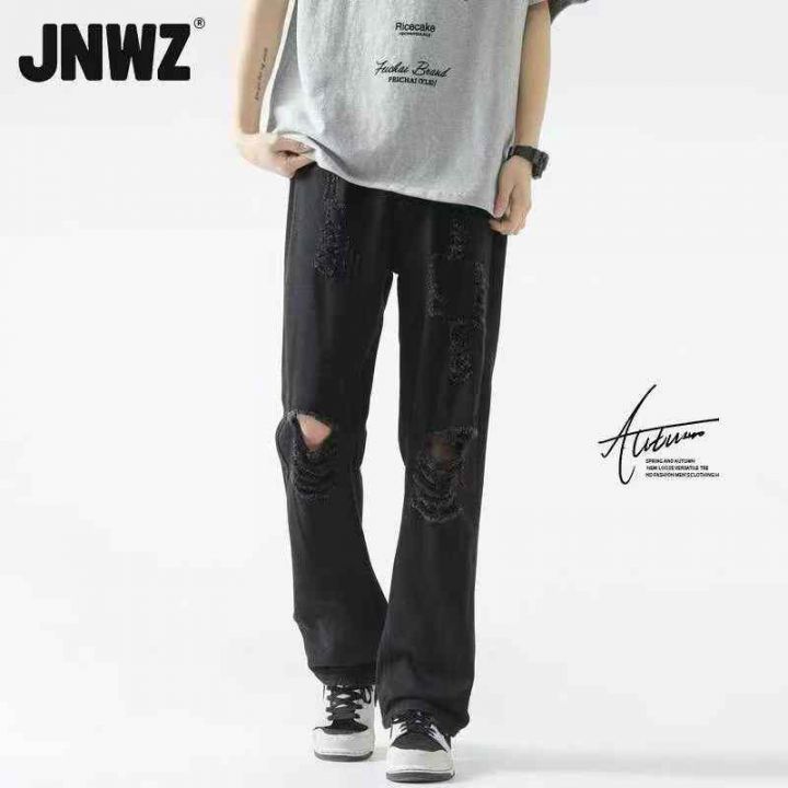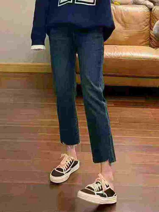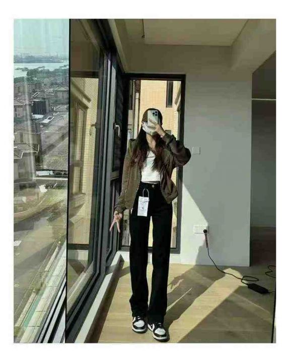 ☕️63033# 美式拼接毛边阔腿牛仔裤女秋季新款高腰宽松显瘦直筒长裤 600条...