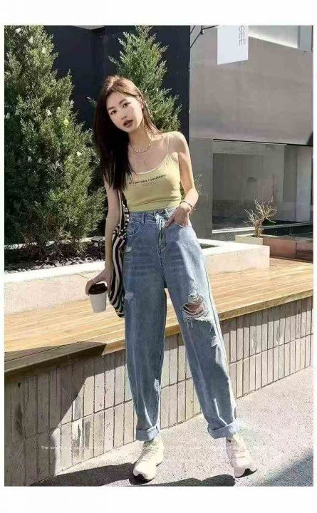 春夏季新款微胖MM破洞设计款牛仔老爹哈伦裤,独立包装带吊牌,码数L-3XL码...