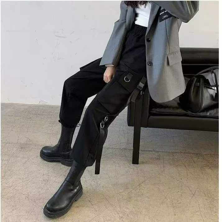 春秋新款弹力复古多袋工装松紧腰休闲裤,独立包装带吊牌,码数27-34码,150...