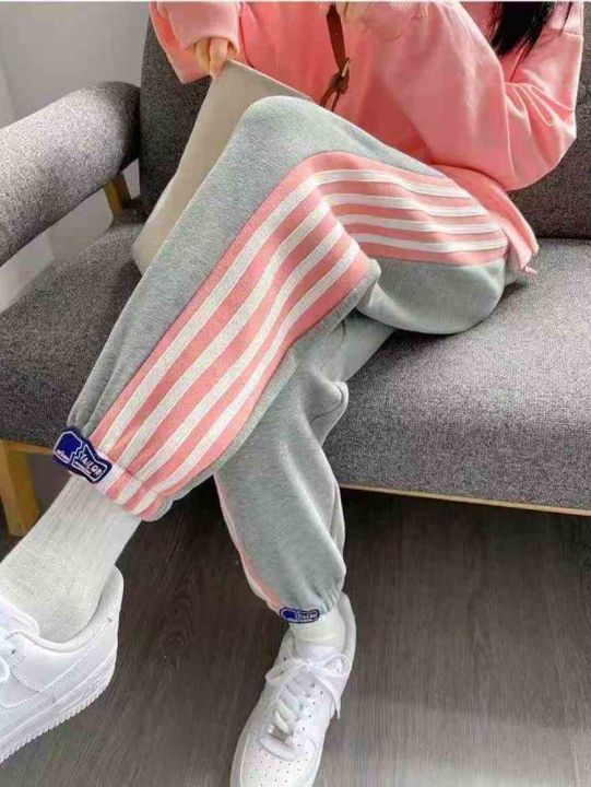 ☕️春秋不加绒卫裤时尚高腰显瘦三道杠条纹束脚运动卫裤313条全清9.8元,分...