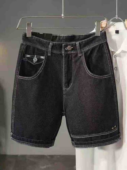 夏季五分牛仔裤男士韩版修身短裤冰丝男款薄款夏天中裤男裤子130件,独立拉...
