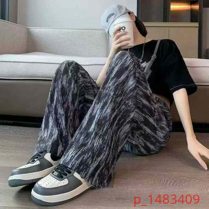 全清5.5女士夏款薄款冰丝扎染休闲裤高腰垂直感阔腿裤可家居也可外穿,整款...