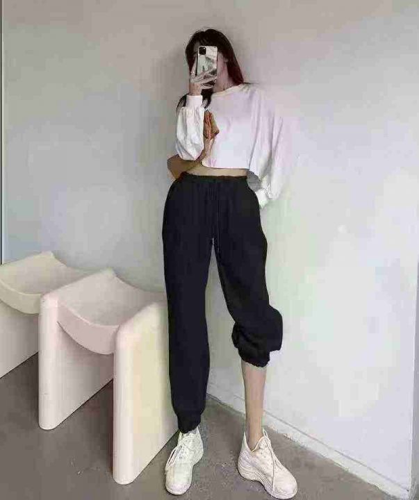 全清9.8元,九分微喇裤女高腰垂感宽松大码显瘦休闲阔腿春秋外穿百搭黑色裤...