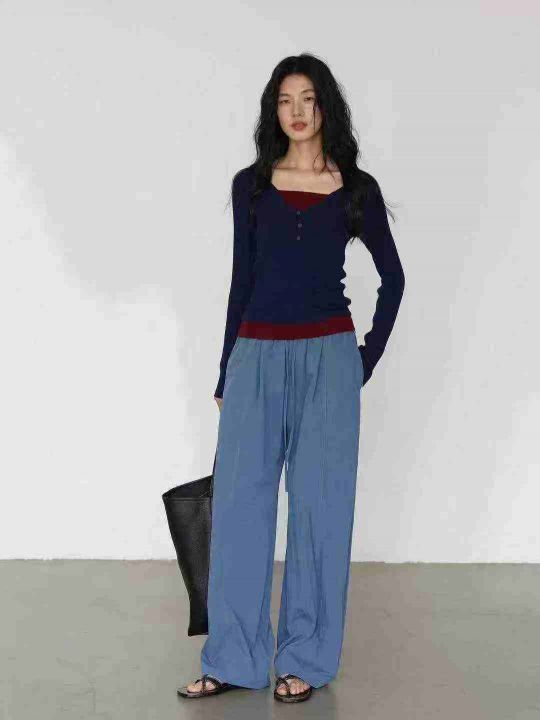 天猫精选300条休闲裤,慵懒风高腰阔腿百搭休闲裤,整款三色,裤头内里包边...