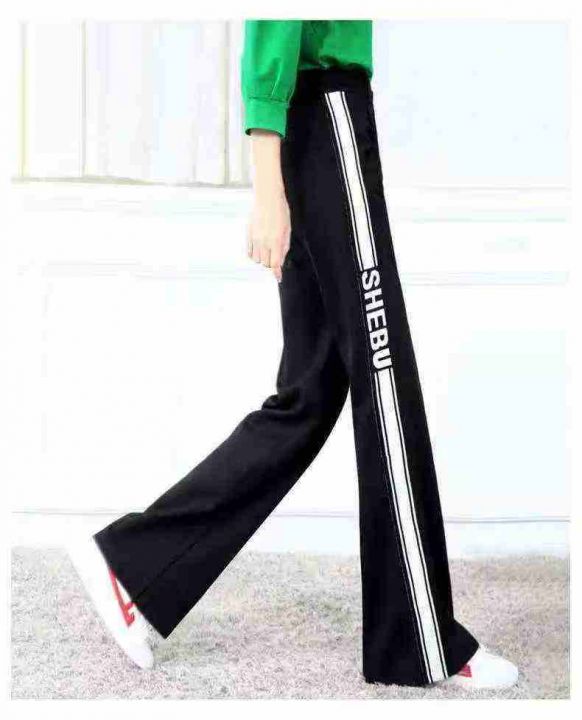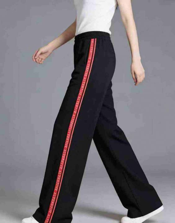 天猫精选300条 秋冬款高腰阔腿黑色字母条纹运动休闲加薄绒裤,吊牌价:259...