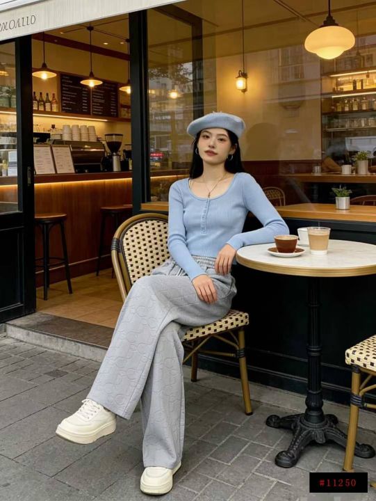 春秋新款显瘦高腰垂感直筒阔腿云朵泡芙休闲裤,独立包装,码数S-XL码,510...
