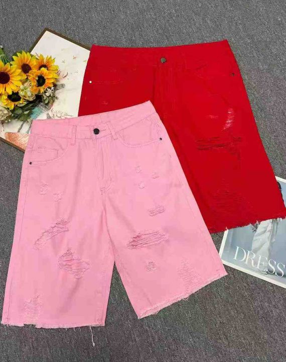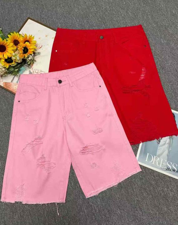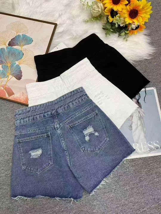 夏季新款洗水棉男女同款宽松破洞美式复古阔腿牛仔短裤,独立包装,码数28--...