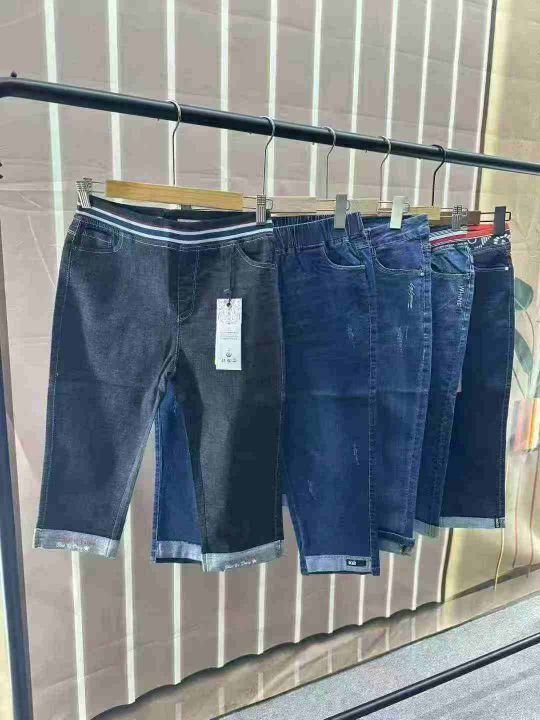全清7.9。夏季薄款松紧腰七分裤修身显瘦牛仔裤女2025新款高腰弹力...