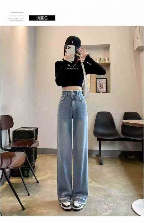 ☕️毛边直筒阔腿牛仔裤女秋冬季新款高腰毛边宽松阔腿裤子 531条全清13.8元...