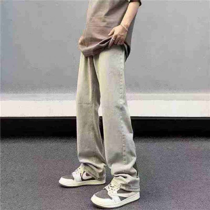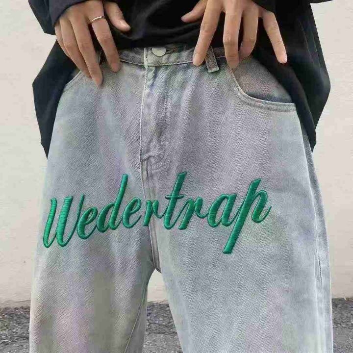 春秋新款国潮美式高街潮牌黄泥染星星植绒刺绣男士小众直筒松紧腰牛仔裤,独...