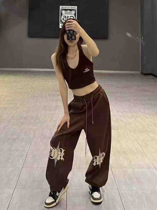 ☕️欧美hiphop街舞裤子咖色美式复古运动卫裤爵士舞vibe束脚休闲裤118条全...