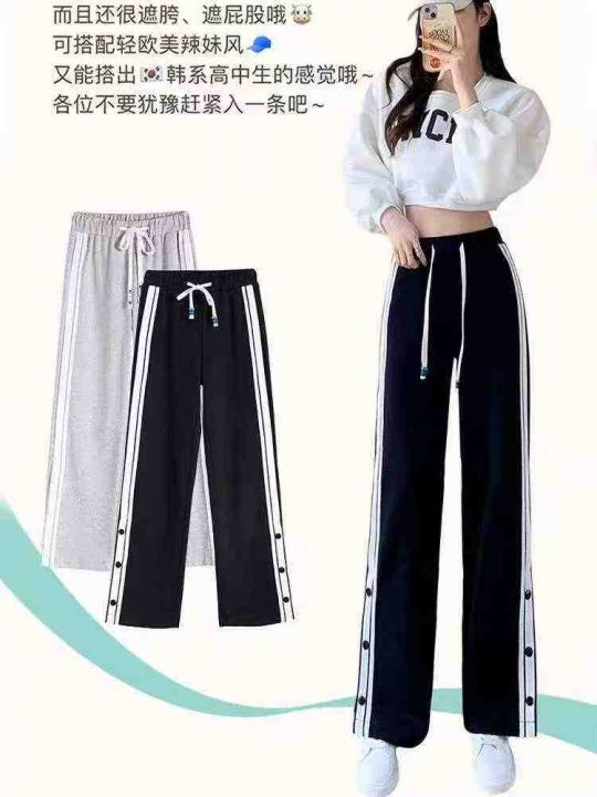 ☕️休闲运动裤黑色条纹高腰垂感宽松显瘦嘻哈ins潮按扣直筒阔腿裤110条全清...