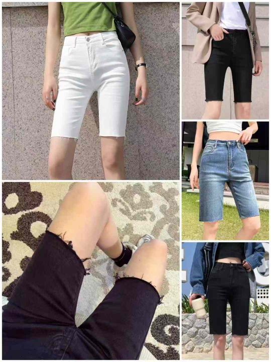 夏季新款高弹力洗水棉网红复古弹力紧身直筒骑行牛仔5分裤,独立包装带吊牌...
