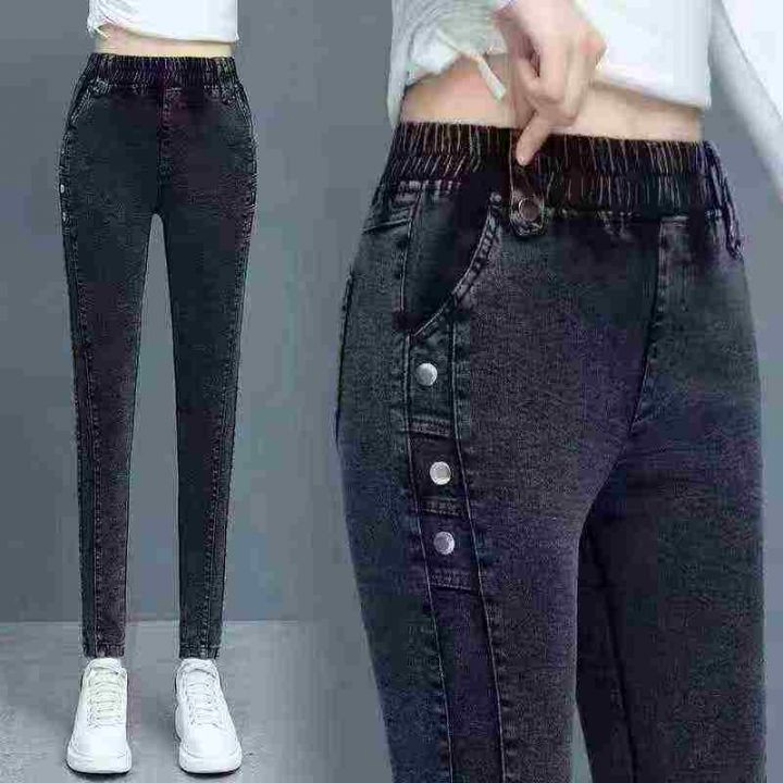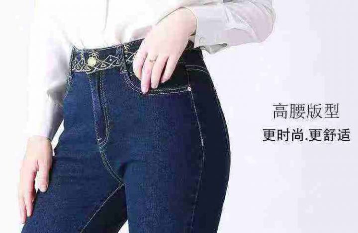 捡漏清仓:9.9一件加绒加厚高腰弹力加绒显瘦小脚铅笔牛仔裤,[爱心]100件左...