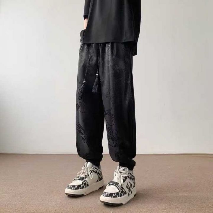 全清7.5分货+1男士夏季新款中国风龙纹新中式冰丝束脚抽绳休闲裤,独立包装...