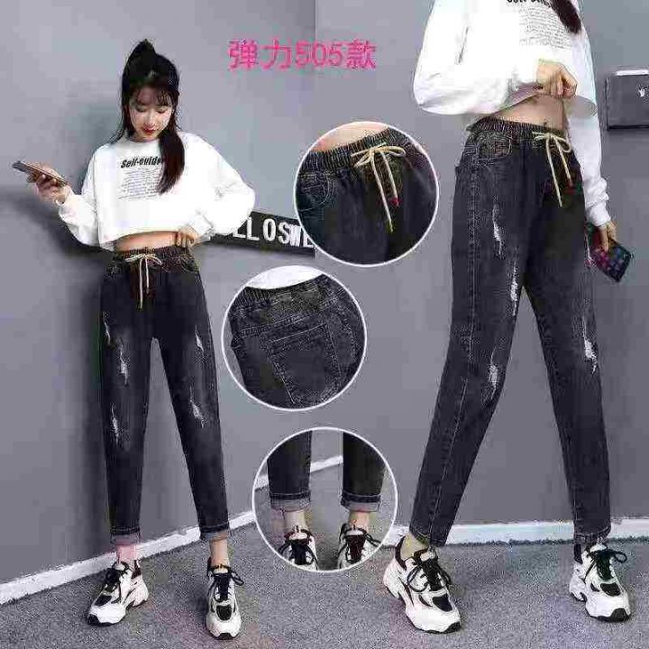 ☕️高弹力松紧腰牛仔裤女高腰大码胖mm哈伦裤直筒显瘦老爹萝卜裤396条全清1...