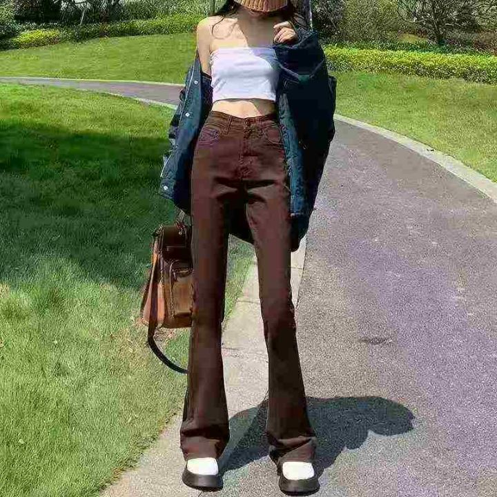 ☕️高弹力棕色微喇叭牛仔裤女秋季新款高腰弹力修身显瘦百搭长裤205条全清1...