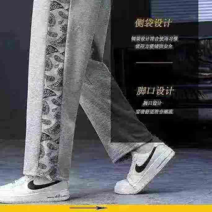 男士潮流拼色百搭阔腿休闲裤,脚口抽绳设计,可束脚可阔腿,鱼鳞布面料加绒...